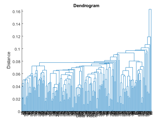 data=rand(2, 200); % 200 data instances of dim 2 distMat=distPairwise(data, data); % Distance matrix of 50 by 50 hcOutput=hierClustering(distMat); figure; hierClusteringPlot(hcOutput); % Plot the dendrogram